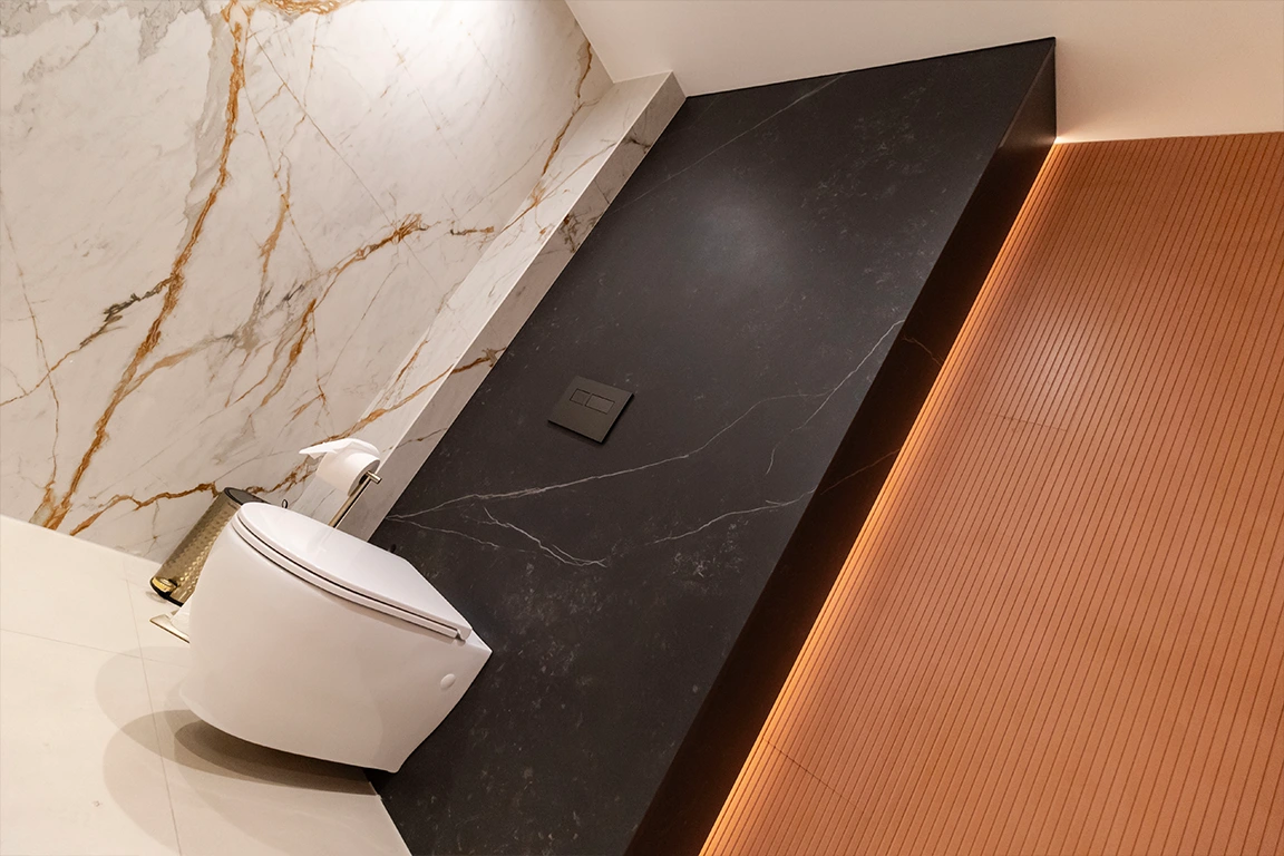 These surfaces can be cut to fit perfectly around taps, shower heads, and recesses, meaning no awkward joins or filler pieces. With a wide choice of colours and finishes, from crisp white veining to dramatic dark tones, you can match your bath area to your vanity top, floors, or feature walls for a truly cohesive design.