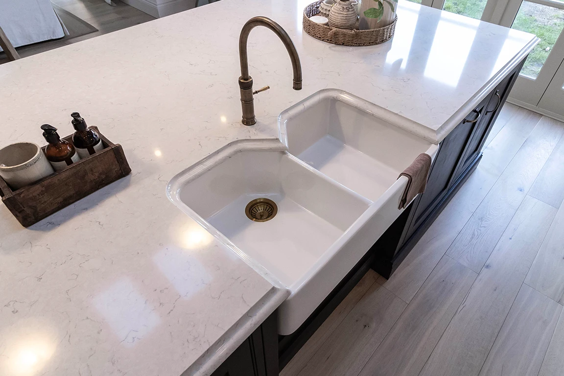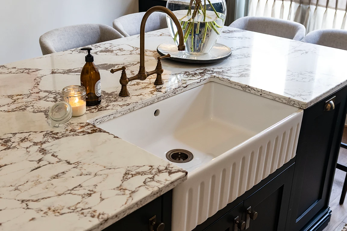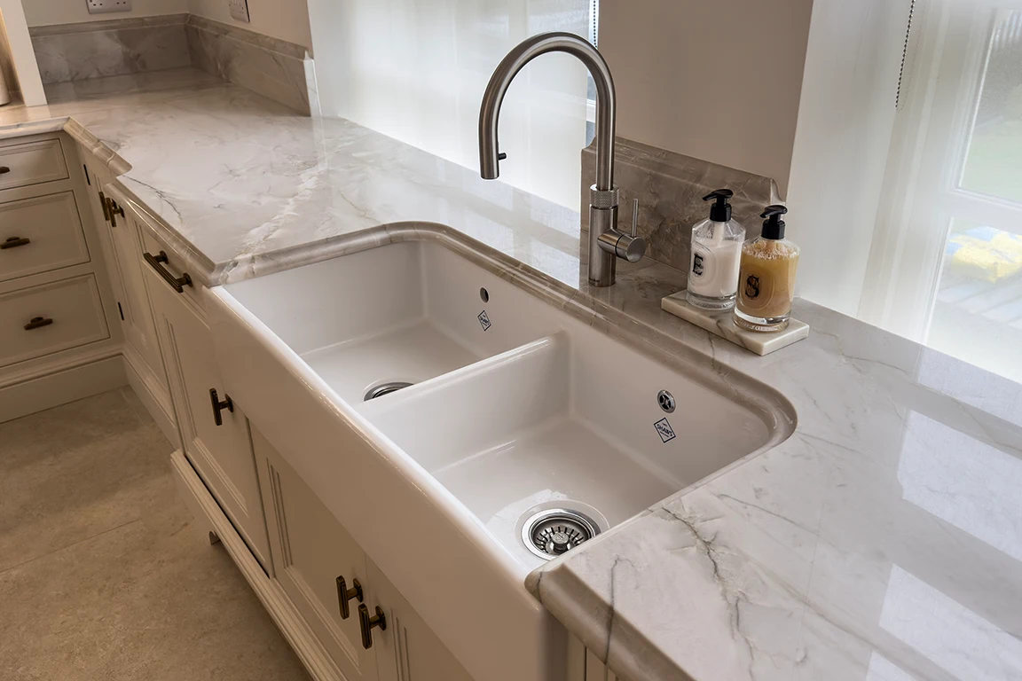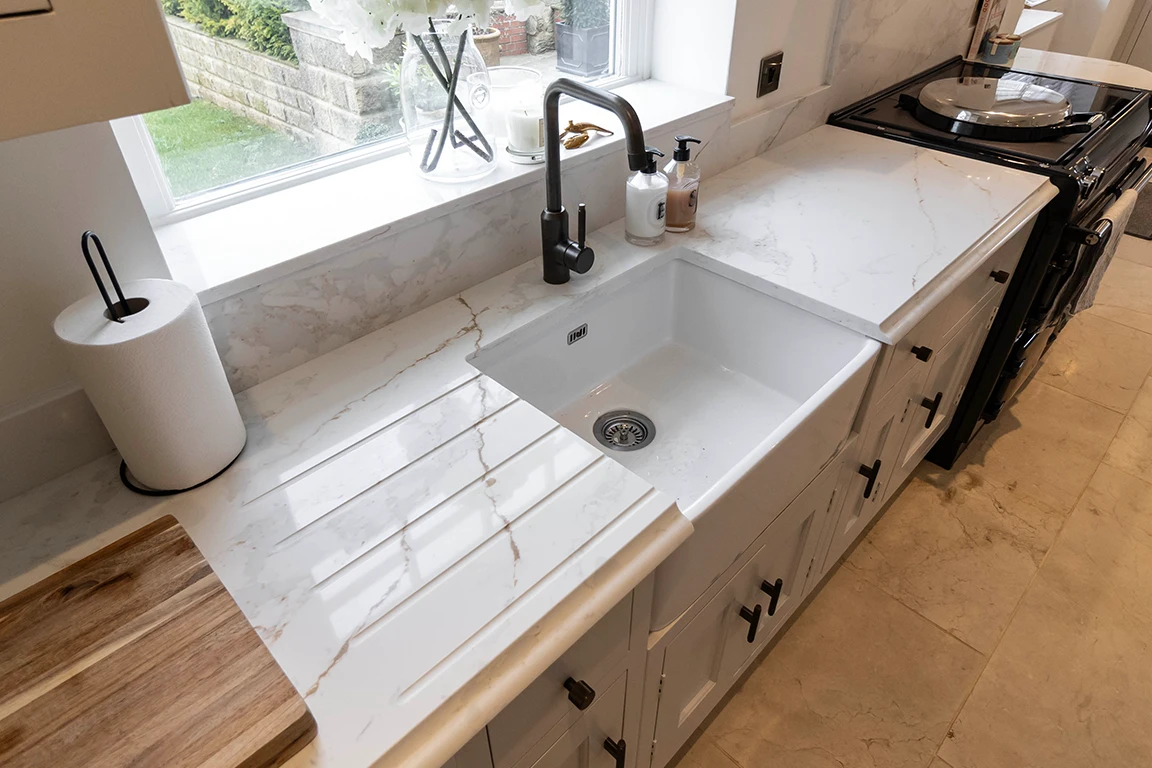 Once your slabs are cut to size, we get to work on the details. Whether it’s sink cut outs, drainer grooves, or plug socket holes, we shape your worktops to fit your space.