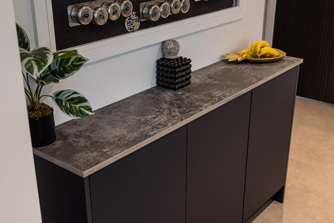This type of edge gives the worktop continuity while maintaining its shock and scratch resistance.