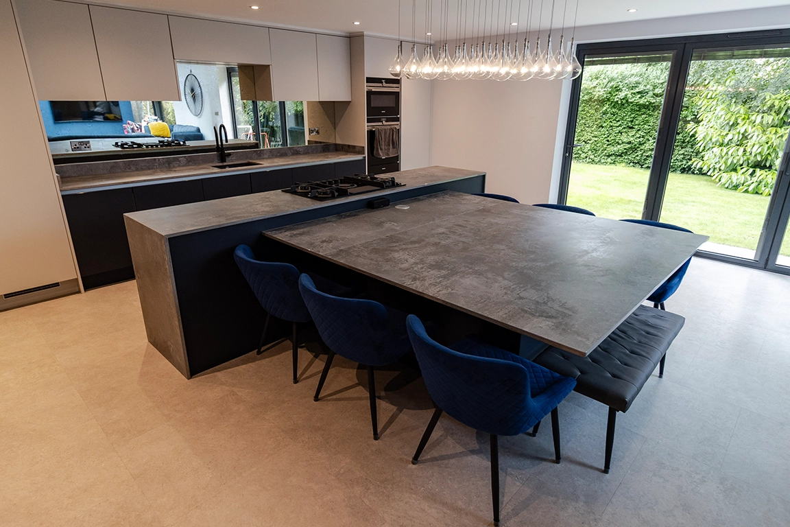 For worktops, island, upstands and splashback around 6.5m² including design options, laser template, delivery and installation