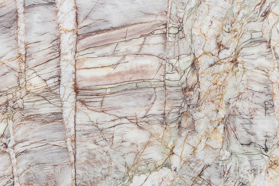 This striking natural stone surface features a luminous, semi translucent base layered with subtle opalescent flashes and soft crystalline veining. Evoking the refined look of luxury gem tones in architectural scale. With exceptional durability, it stands up to countertops, feature walls and flooring alike, while delivering a visual effect that is both serene and sculptural. Whether used in kitchens, baths or living areas, Crystal Opal quartzite makes a statement both of enduring strength and exquisite style.
