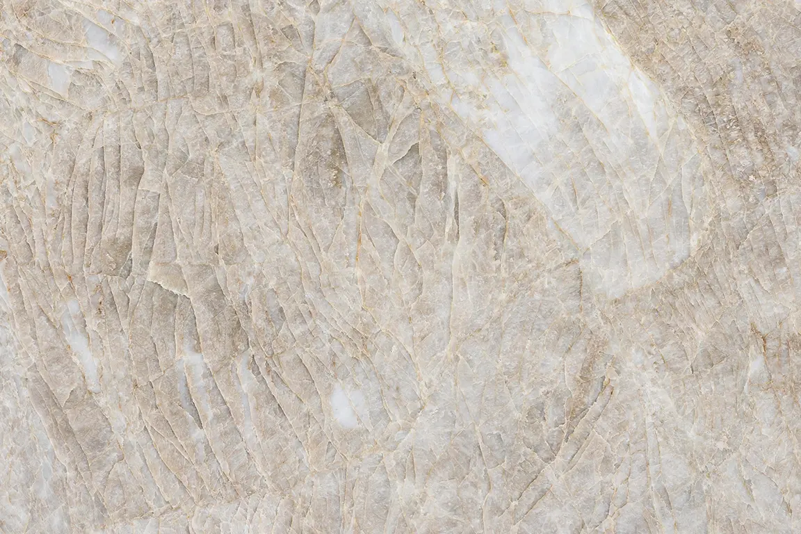 Taj Mahal Quartzite is a naturally stunning stone known for its soft, warm palette and refined movement. At its heart is a creamy white and light beige base that feels bright and inviting, with delicate veins of beige, gold, taupe and subtle grey gently weaving across the surface. This organic blend brings depth and visual interest while maintaining a serene, timeless look that complements both classic and contemporary interiors.